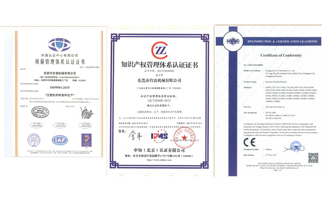 ● 公司成立至今,榮獲了多項(xiàng)證書(shū),其中包括《中國(guó)注塑機(jī)十大品牌》、《廣東省信得過(guò)單位》等一些榮譽(yù),提為國(guó)家高新技術(shù)企業(yè),及多項(xiàng)專利。